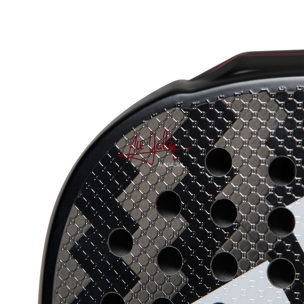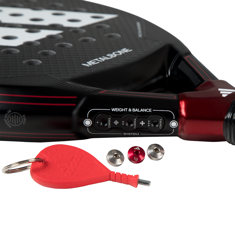 En ketcher, hvor kraften når exceptionelle niveauer for topspillere. METALBONE 3.3 er en powerketcher med alle de funktioner, der opfylder behovene hos PRO-spillere. Den inkluderer Weight & Balance System, en teknologi, der giver mulighed for at ændre ketcherens vægt og balance for at opnå en endnu mere kraftfuld version eller for at forbedre kontrollen. De bedste spinslag garanteres af Spin Blade-mærkets ruhed og placeringen af hullerne i Smart Holes Curve. Ketsjeren har en meget stiv sammensætning takket være den ottekantede struktur i ketcherens ramme og den carbonaluminiserede 2 til 1-fiber på overfladen. Diamond Oversize-hovedformen er ideel til de mest kraftfulde slag. VÆGT- OG BALANCESYSTEM Muligheden for at samle forskellige ketchere i ét enkelt håndtag er mulig takket være denne teknologi. Systemet med aftagelige vægte placeret i halsen giver spilleren mulighed for at ændre balancen og ketcherens samlede vægt og tilpasse den. Der er i alt seks skruer, der kan tilpasse ketcheren til en angrebs- eller kontrolstil, alt efter spillerens ønske. OTTEKANTET STRUKTUR Maksimal stivhed kommer fra det indre. Denne teknologi har en rørformet struktur med en ottekantet sektion i kernen af ketcheren, der giver den stor konsistens. Dens modstand mod vridning er ekstremt høj, så de mest kraftfulde slag er garanteret. SPIN BLADE DECAL Denne teknologi dækker ketcherens overflade med en ru overflade med høj grebskapacitet. Friktionen med bolden er total, så effekterne udføres med forbløffende lethed.