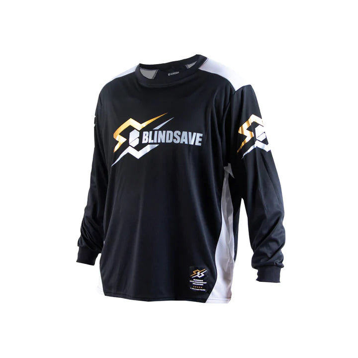 BLINDSAVE fejrer sit 10-års jubilæum og præsenterer en specialudgave-kollektion med nyt logo og et friskt design! Den nye målmandstrøje "X" har polstrede skuldre for at give bedre beskyttelse og få dig til at se endnu større ud i nettet. Integreret mesh-stof giver bedre ventilation og høj komfort. Funktioner: • Nyt sort/hvidt og guldfarvet design • Polstrede skuldre • Integreret mesh-stof for bedre ventilation • Målmandspasform - se stor ud i nettet