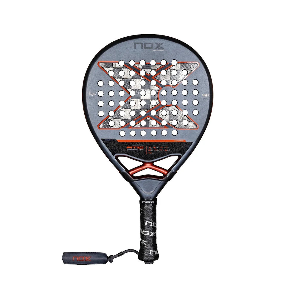 Den nye padelketcher fra Nox, udviklet i samarbejde med Agustín Tapia til sæsonen 2025, er en teknologisk revolution inden for sporten. Med en støbt ramme, innovative materialer og banebrydende teknologi har du mulighed for at lege med fremtidens padelketcher i dag. Årets model har ikke kun et nyt, moderne design, men også en spændende teknologisk innovation fra Nox – Exclusive Spin. Denne teknologi kombinerer to typer overflader på slagfladen: en 3D-sekskantet struktur i midten og en sandbelægning på resten af overfladen. Denne dobbelte tekstur giver bedre kontrol og evnen til at generere mere spin på bolden. Slagfladen er også behandlet med letvægts silicasand for en optimeret følelse. Rammens kanter er aerodynamisk designet for at reducere luftmodstanden og øge svinghastigheden. Derudover har padelketcheren den imponerende EOS Flap-teknologi, som involverer sideriller for bedre håndtering og en mere jævn vægtfordeling. Det er ikke overraskende, at denne model er Agustín Tapias førstevalg. Materialekombinationen består af aluminiseret 18K Alum-kulfiber på slagfladen og en flerlagskerne kaldet MLD Black Eva, som giver en behagelig, stabil og pålidelig spillefølelse. Den aluminiserede kulfiber er også mere modstandsdygtig over for temperaturændringer, hvilket betyder, at ketcherens ydeevne og følelse forbliver ensartet, uanset om du spiller indendørs, udendørs eller ofte rejser mellem forskellige padelhaller for at dyrke din yndlingssport. Årets AT10 Genius-serie er udstyret med den populære Pulse System-teknologi, som blev introduceret sidste år. Dette system består af to elastikker inde i grebet, der effektivt absorberer vibrationer og øger komforten. Derudover er hele Luxury-serien fra Nox blevet standardiseret med Nox Custom Grip, certificeret af Testea Padel, som forbedrer grebet og reducerer yderligere vibrationer. Serien har også et 30 mm længere greb end standard Nox-ketchere for bedre håndtering. Luxury Genius-serien har også udskiftelige håndledsremme via Smartstrap-systemet, hvilket forbedrer hygiejnen og giver en frisk følelse hver gang du skifter remmen. Så hvad er forskellen på AT10 Genius 18K Alum og AT10 Genius 12K? Både 18K Alum og 12K deler den samme form, kerne og teknologier; den eneste forskel mellem dem er materialet i slagfladen. Hvilken model du skal vælge afhænger af dine præferencer: AT10 Luxury Genius 18K Alum, hvis du foretrækker en medium-stiv slagfølelse. (Agustín Tapias ketchervalg) AT10 Genius 12K, hvis du foretrækker en stivere slagfølelse. Hele AT10 Luxury Genius-serien har gennemgået hårde kvalitetstests og er blevet certificeret for holdbarhed af Testea Padel. Teknologier Kulfiber 18K Alum Aluminiseret 18K kulfiber, der giver en solid og behagelig følelse i boldslaget og øget modstand mod temperaturændringer, føles ikke så stiv som en almindelig slagflade af 18K kulfiber. MLD Black Eva Flerlagskerne, der kombinerer forskellige gummitætheder for at optimere boldens output under defensive slag med lavere hastighed og mere kraft i offensive spil og afslutningsslag. Eksklusivt spin Inkluderer to typer ru overflade på slagfladen: en 3D hexagonal finish i midten af padelketcheren og en sandfinish på resten af overfladen. Denne dobbelte ruhed giver dig bedre kontrol og muligheden for at skabe mere effekt på bolden. Slagfladen er dyppet i et bad af letvægts silicasand. Smartstrap Forny følelsen af din ketcher ved at udskifte remmen, som i mange tilfælde kan slides op. Med teknologien har du mulighed for at øge hygiejnen og opdatere din padelketcher i henhold til dine visuelle præferencer. Oversize Grip Padelketcheren har et 10 mm længere greb i modsætning til mange andre modeller fra Nox, der generelt har ret korte greb. Perfekt til dem, der nyder et lidt længere greb, og til dem, der nogle gange spiller med en dobbeltgrebsbaghånd. Eos Flap Forbedrer aerodynamikken ved hjælp af sideperforeringer designet til at øge ketcherens manøvredygtighed og fordele vægten, hvilket giver dig en hurtig og offensiv padelketcher i din hånd. Pulse System Reducerer vibrationer, der overføres til spillerens hånd, ved at introducere laterale gummibånd i grebet, der går fra bunden af ketcherhalsen til håndtagets knap. Kulfiberramme Ved at bruge kulfiber i rammerne giver vi mere stivhed og holdbarhed til rammen og ketcheren generelt. DCS - Dynamisk kompositstruktur Ved at anvende mere materiale fra rammen, op til fire centimeter længere nede i slagfladen, minimeres forskellen i hårdhed mellem rammen og slagfladen. På denne måde, når bolden rammer uden for sweet spot, minimeres risikoen for, at slagfladen revner, og din padelketcher går i stykker. Nox Custom Grip Hele Luxury-serien inkluderer den patenterede NOX Custom Grip®-teknologi, certificeret af Testea Padel for at øge grebet og reducere vibrationer.