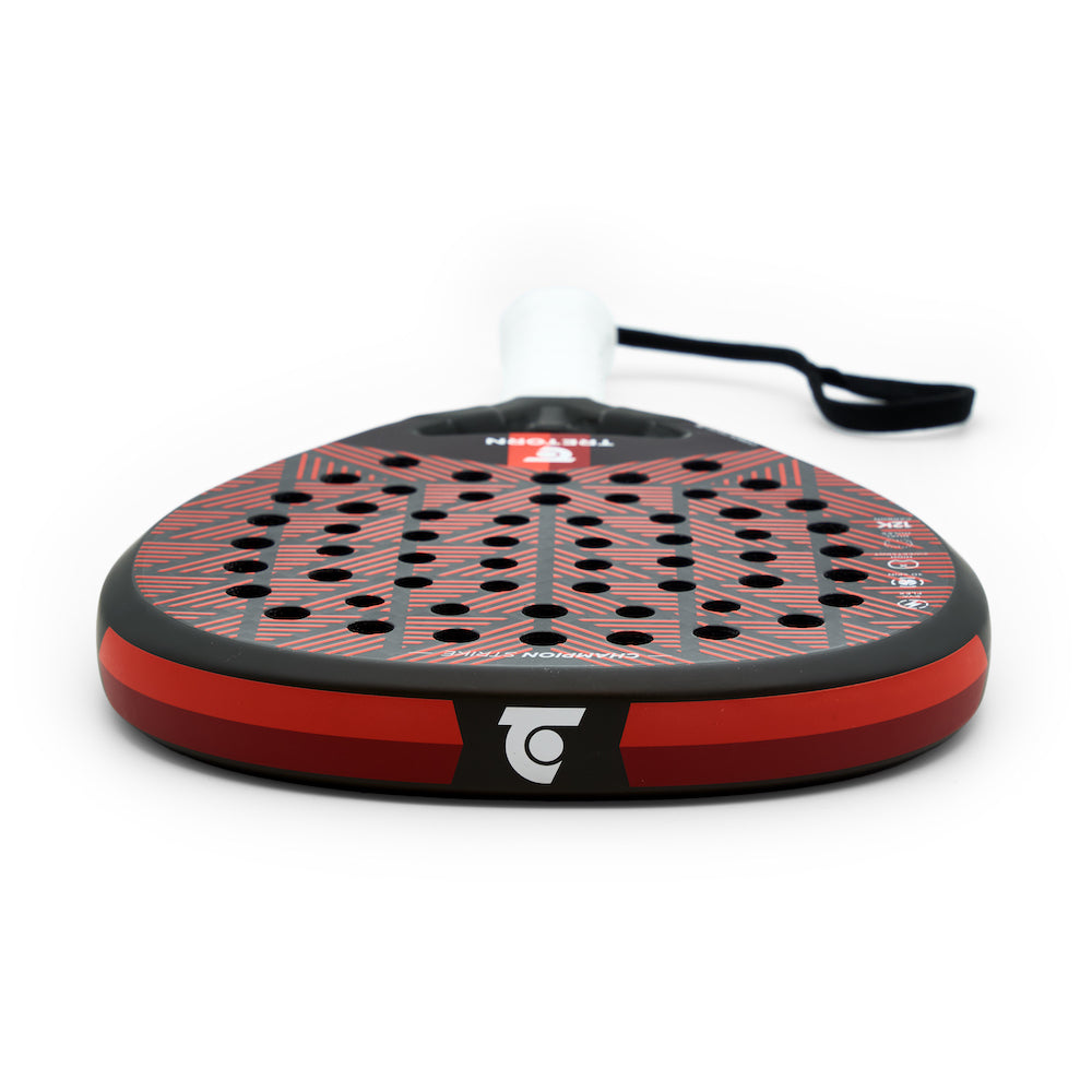 Tutustu CHAMPION STRIKEen – Täydellinen maila hyökkääjälle! Poikkeuksellisen teknologian ja materiaalien yhdistelmän ansiosta tämä maila antaa sinulle voimaa hallita peliä ja hallinnan tarkkoihin lyönteihin. Katsotaanpa CHAMPION STRIKEn vaikuttavia ominaisuuksia. CHAMPION STRIKEssa on japanilainen 12K hiilikuitukerros, joka tarjoaa paitsi vaikuttavaa voimaa hyökkäyslyönneissäsi, myös syvän ja energisen vasteen. Tämä antaa sinulle mahdollisuuden ottaa peli hallintaasi ja jättää jälkesi jokaiseen pisteeseen. Yhdessä EVA FLEX -ytimen kanssa saat erinomaisen yhdistelmän tuntumaa ja kosketusta peliin. Jokainen lyönti tuntuu tarkalta ja reagoivalta, minkä ansiosta voit pelata pienillä marginaaleilla ja säilyttää pelin hallinnan. Täydellinen pelaajille, joilla on poikkeuksellinen kyky hallita palloa. Maila on myös varustettu DUAL-reikäkuvioinnilla, joka optimoi mailan kosketuspisteet ja parantaa hallittujen lyöntien mahdollisuuksia myös lyötäessä mailan sweetspotin ulkopuolella. Tulos? Jatkuva voima ja tarkkuus, joiden avulla voit päättää pelin tempon. Lisäksi voit maksimoida kierteen monisuuntaisella 3D-tarrallamme ja yllättää vastustajasi pelisi vaihtelulla. CHAMPION STRIKE antaa sinulle mahdollisuuden olla monipuolinen ja mukauttaa tyylisi jokaiseen tilanteeseen.