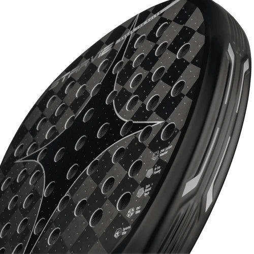 Uuden hybridimuodon ja huippumateriaalien ansiosta BLACK TITAN tarjoaa erittäin tarkan ja suoran vasteen, joka sopii täydellisesti vaativille pelaajille, jotka etsivät äärimmäistä voimaa menettämättä hallintaa uuden 24K Carbon Master -teknologian ansiosta. Sen H-Eva Power -vaahto tarjoaa napakan ja räjähtävän tuntuman, joka varmistaa täydellisen dominoinnin jokaisella lyönnillä. Siinä on kaksi keskeistä innovaatiota: uusi Anti-Vibe-teknologia, joka on suunniteltu minimoimaan tärinää iskun aikana vähentääkseen nivelkipuja ja parantaakseen mukavuutta kentällä; sekä Dynamic Star -järjestelmä, vaihdettava keskitähti, jossa on kaksi painovaihtoehtoa, joiden avulla pelaajat voivat säätää mailan tasapainoa. Tämä järjestelmä mahdollistaa 0,3 cm:n tasapainovaihtelun.