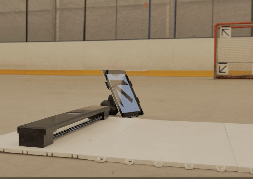 Hockeyredskap för att kunna träna på bättre passningar och direktskott. Går lika bra att använda på och utanför isen. Redskapet används tillsammans med appen Hockeyrevolution.